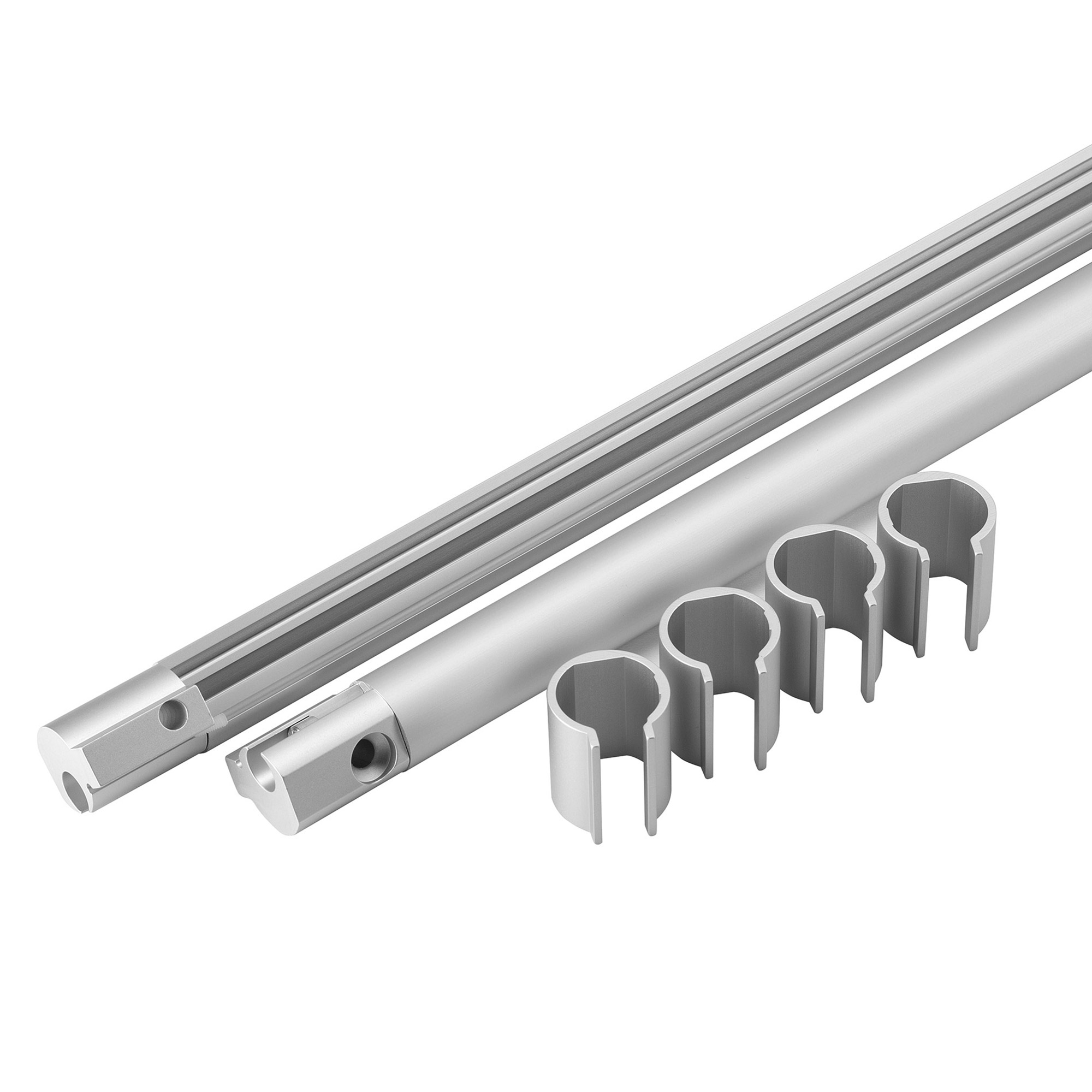 - Bestehend aus: 2 Trägerprofilen, 4 Wandhaltern, 4 Abdeckkappen