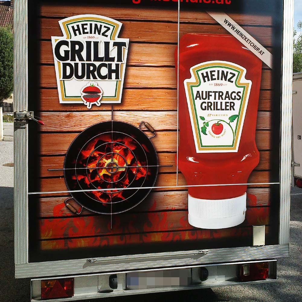 PVC-Folie digital bedruckt geeignet für gerade und leicht unebene Flächen – mittelfristige Einsatzdauer. Auf Wunsch mit Schutzlaminat für erhöhte Kratz- und UV-Beständigkeit.