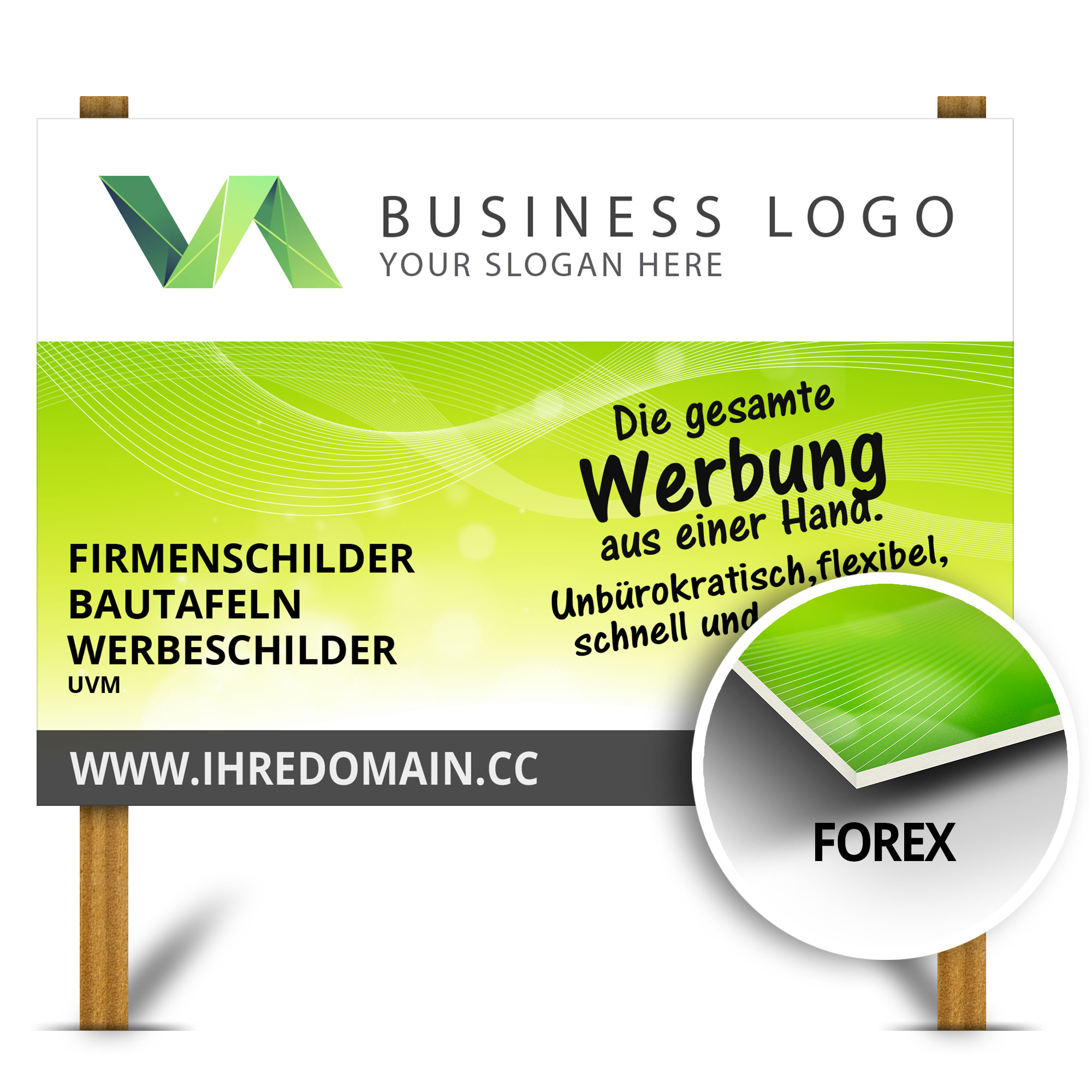 Direkt bedrucktes PVC-Hartschaum-Werbeschild, optional auch mit beidseitigen Druck.
