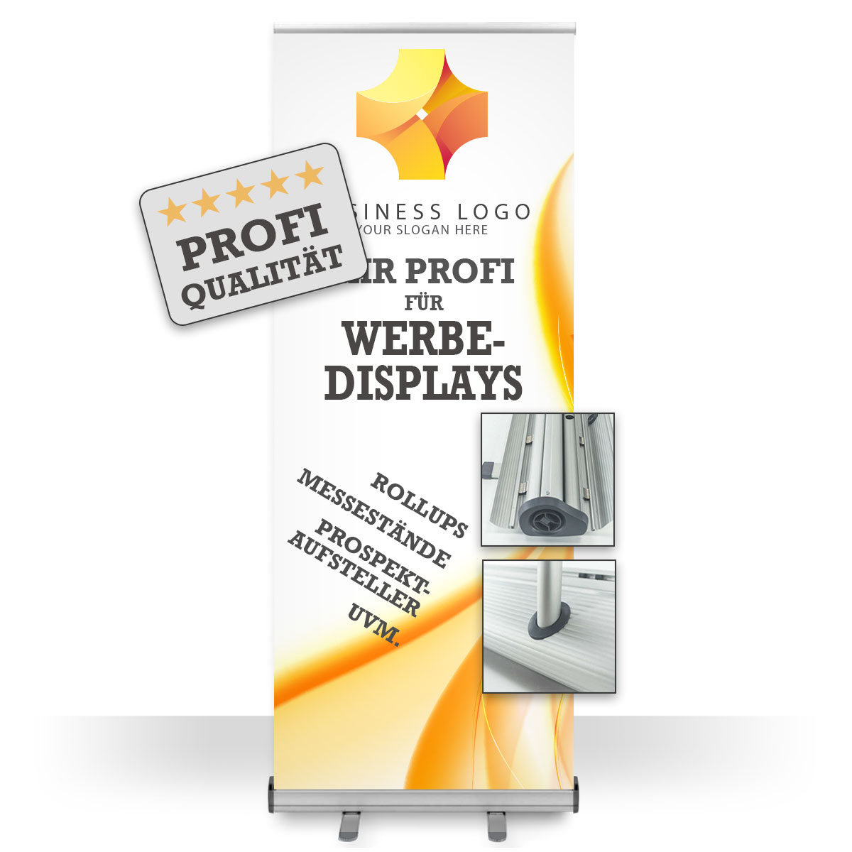 Das Profi Rollup auf höchstem Qualitätsniveau! Das besondere ist die Klemmfunktion oben und unten! Somit kann das Motiv mit ein paar Handgriffen jederzeit getauscht werden.