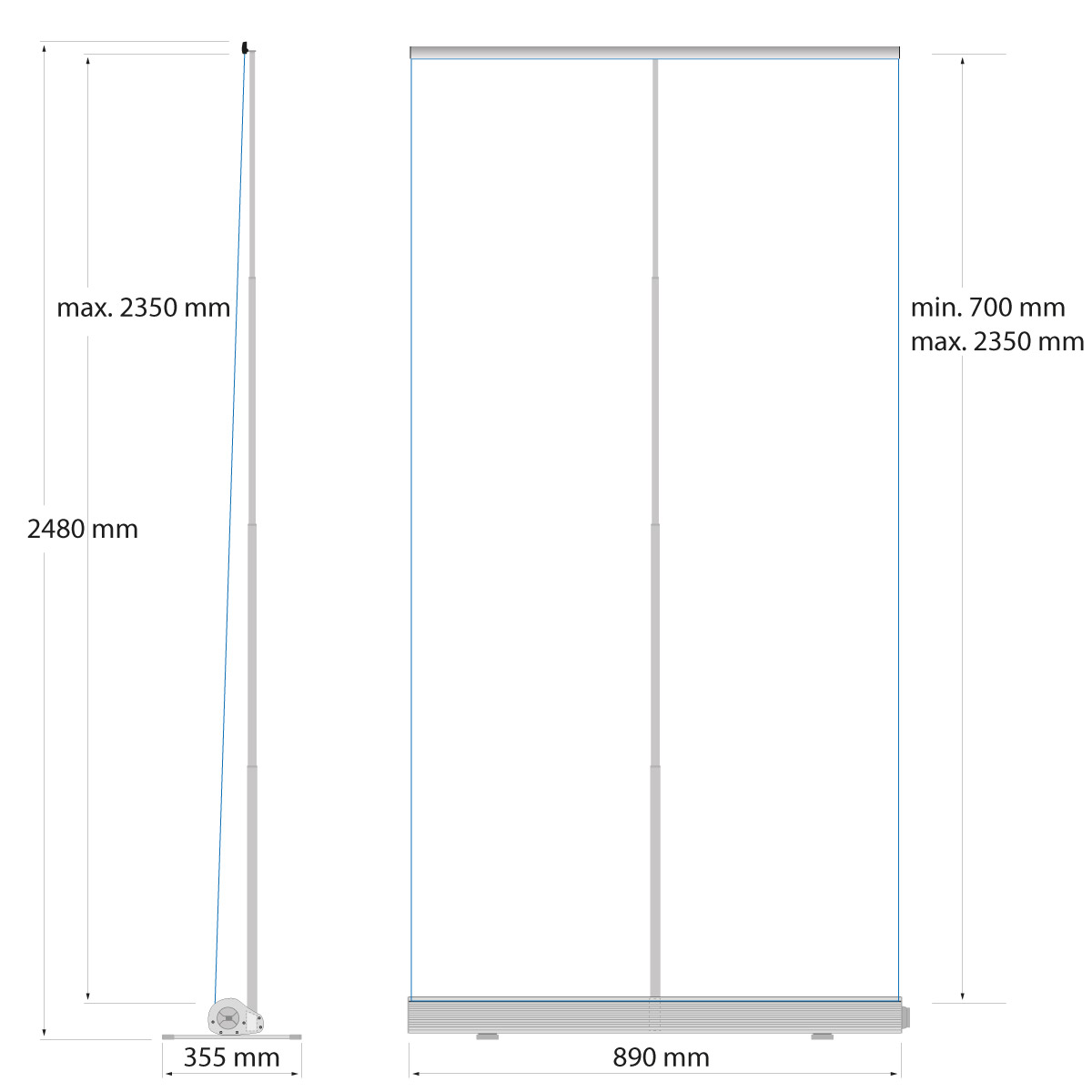 - Beliebig verstellbar von 700 - 2350 mm Höhe