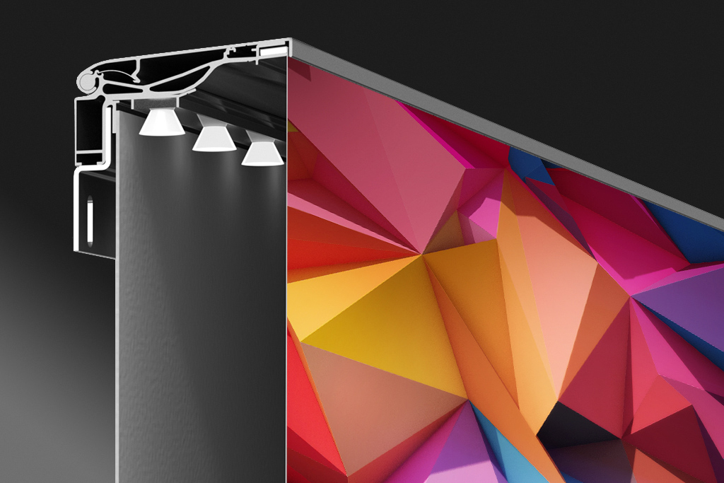 Die Spanntuchsysteme Lumi und StorOut bieten innovative Lösungen für beeindruckende Textilspannrahmen. Lumi überzeugt durch geringe Bautiefe, ideal für moderne LED-Technik mit perfekter Flächenausleuchtung, sowie ein Vollalusystem für langlebigen Einsatz.