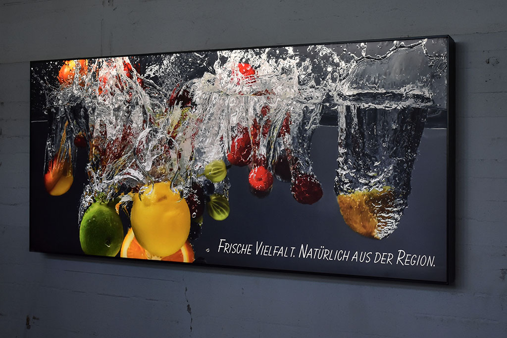 Mit einem innovativen Klappmechanismus ausgestattet, wird das Gewebe zuverlässig auch bei Wind und Wetter im Profilkanal gehalten und eine hochwertige Rahmenoptik erzielt. Trotzdem können Sie Ihre Motive jederzeit ohne Spezialwerkzeug wechseln und wiederverwenden.