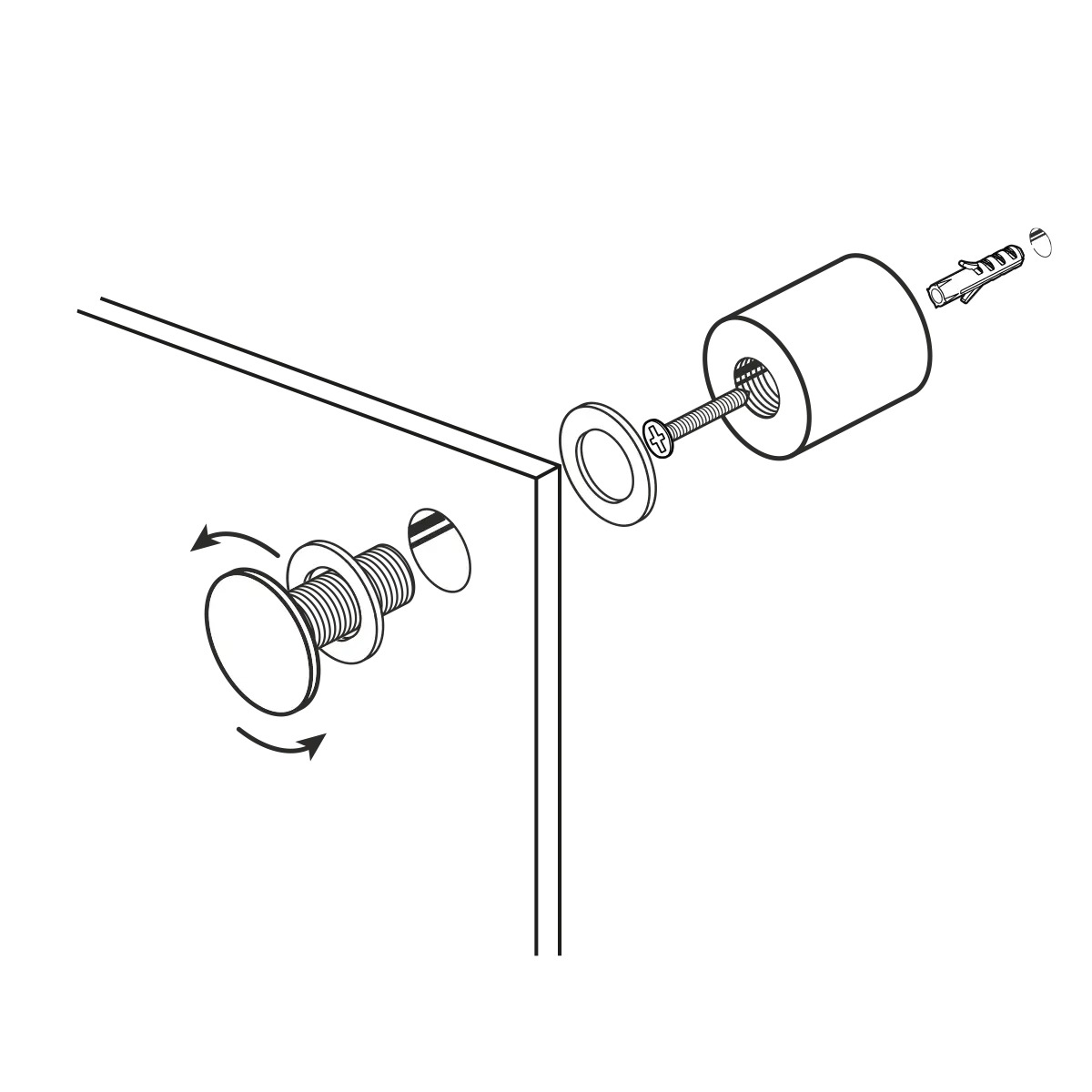 Hochwertiger Edelstahl, Stecksystem. Halter an der Wand befestigen, Paneel auflegen, Kopf durch das Paneel in den Halter geschraubt.